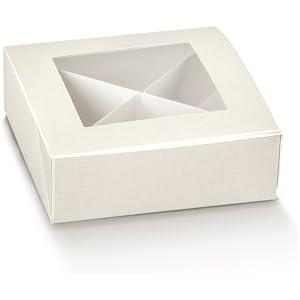 LUCGEL Scatola Quadrata Bianca con Finestra e Separatore per Confetti - Set da 20 Pz, Dimensioni 120x120x40 mm