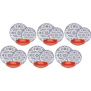 ROSE & TULIPANI - Set 18 Piatti Sea Breeze in Gres, Lavabile in Lavastoviglie e Microonde