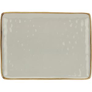 ROSE & TULIPANI Vassoio Rettangolare Grigio Perla con Bordo Dorato in Ceramica Decorata, Linea Concerto, 36x26.6 cm