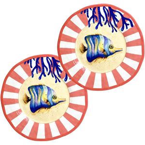 ROSE & TULIPANI - Set 2 Piatti Fondi Ovali Sea Life in Melamina, 24x15 cm con Decorazioni del Mondo Marino