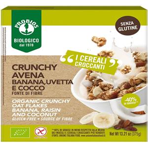 Probios Easy To Go Bio Crunchy Avena Banana Uvetta e Cocco - Fonte di Fibre, Senza Glutine, 375g