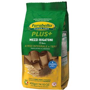 FARABELLA Mezzi Rigatoni Riso Integrale Teff 400 g - Pasta senza glutine ricca di fibre