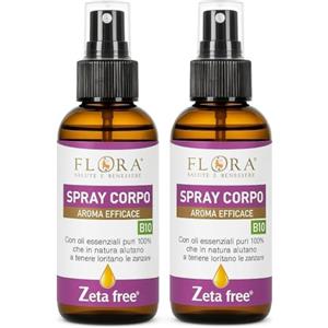 FLORA Spray Corpo, pack da 2 Pz da 100 ml, Zeta free BIO-COSMOS Per un'estate serena liberi dalle zanzare Azione protettiva e rinfrescante