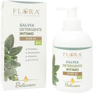 FLORA Detergente Intimo Salvia 250ml - pH 4.0-4.5, con estratto e olio essenziale 100% puro, protettivo e lenitivo per donne in menopausa