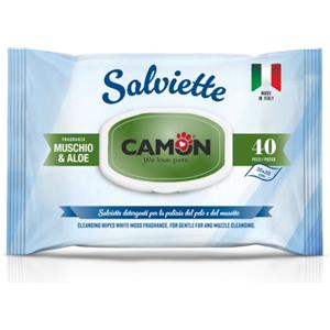 Camon Salviette Detergenti Muschio e Aloe - 40pz per Cani e Gatti, Senza Alcool e Parabeni