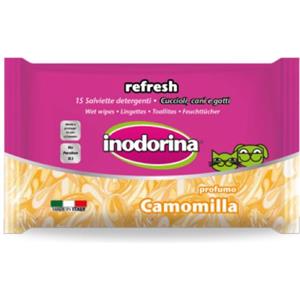Inodorina Salviette Detergenti alla Camomilla per Occhi e Orecchie - 15 Pezzi, Morbide e Delicate per Cani e Gatti