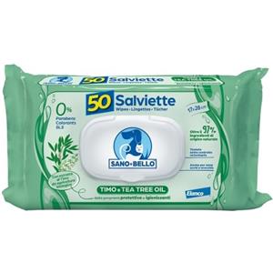 Elanco Sano e Bello Salviette Detergenti Timo e Tea Tree Oil 50pz per Cani e Gatti - Igiene e Pulizia Senza Acqua