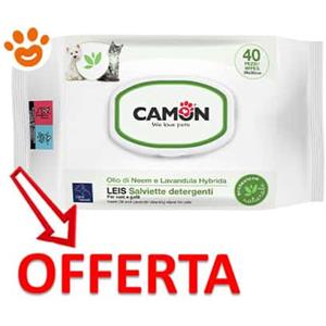 Camon Salviette Detergenti Leis 40 Pezzi con Olio di Neem e Lavandula - Pulizia per Cani e Gatti