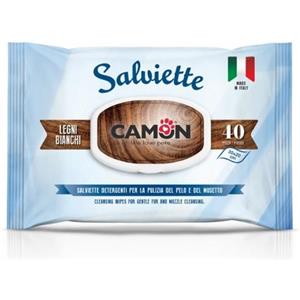 Camon Salviette Detergenti Legni Bianchi - 40 Pezzi per Cani e Gatti, Pulizia e Igiene Quotidiana