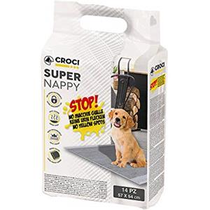 Croci Tappetini Igienici Super Nappy al Carbone Attivo - 57x54 cm, 14 Pezzi, Ultra Assorbenti e Antiodore per Cani e Gatti