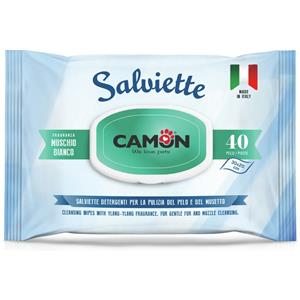 CAMON Salviette Detergenti Muschio Bianco 40pz per Cani e Gatti - Pulizia e Freschezza Quotidiana
