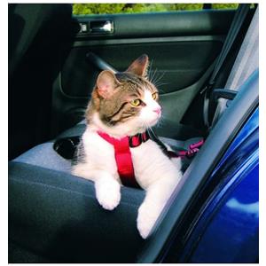 TRIXIE Pettorina e Cintura di Sicurezza per Gatti - Regolabile 20-50 cm, Nylon Imbottito, Colore Rosso