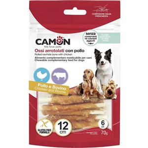 Camon Rolls di Pelle Bovina con Pollo - Snack Masticabili per Cani, Gluten Free, 70g