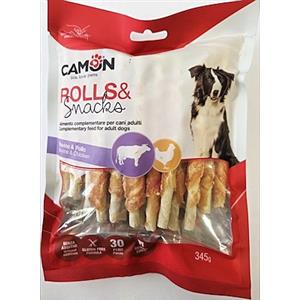 CAMON Rolls di Pelle Bovina con Pollo - Snack Masticabili per Cani, Gluten Free, 30 Pezzi da 345g