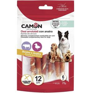 CAMON Rolls di Pelle Bovina con Anatra - Snack Masticabile per Cani - 17 cm, 140 g, Gluten Free e Senza Additivi
