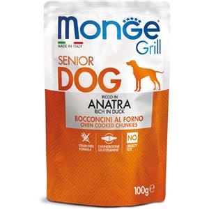 Monge Grill Senior Bocconcini con Anatra - Cibo Umido Completo per Cani Anziani - 100g