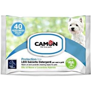 Camon Salviette Detergenti Leis 40 Pezzi con Olio di Neem e Lavandula - Pulizia per Cani e Gatti