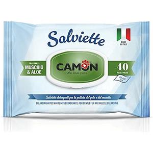 Camon Salviette Detergenti Muschio e Aloe - 40pz per Cani e Gatti, Senza Alcool e Parabeni