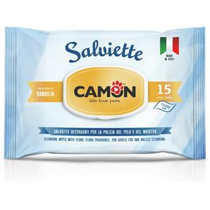 Camon Salviette Pocket Vaniglia - 15 Pezzi per Cani e Gatti, Pulizia del Pelo Pratica e Profumata