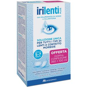 Montefarmaco Irilenti Plus - Soluzione Unica per Lenti a Contatto Morbide, 360ml 100ml con Ialuronato di Sodio e Allantoina