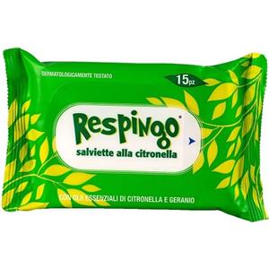 Respingo Salviette Citronella 15 Pezzi - Con Oli Essenziali di Citronella e Geranio, Dermatologicamente Testato