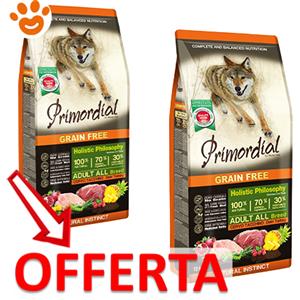 Primordial Dog Grain Free Adult Cervo e Tacchino - Offerta [PREZZO A CONFEZIONE] Quantità Minima 2, Sacco Da 12 Kg