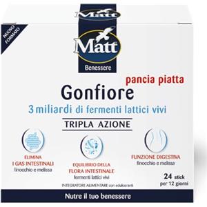 Matt Benessere Pancia Piatta Plus - Integratore con 3 Miliardi di Fermenti Lattici Vivi in 12 Bustine per il Benessere Intestinale