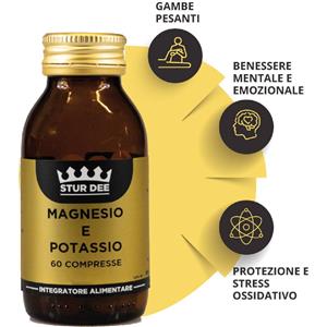 Stur Dee Magnesio e Potassio - Integratore Alimentare 60 Compresse per Stanchezza, Crampi Muscolari e Supporto Emotivo