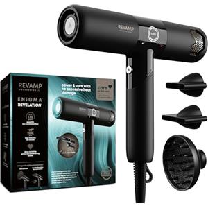 REVAMP Asciugacapelli Enigma Revelation Ionico - Motore Digitale Intelligente, 4 Impostazioni di Calore, 3 Velocità, Display LCD, 3 Accessori Magnetici