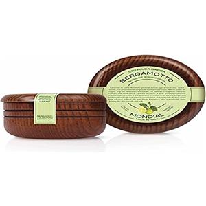 Mondial Crema da Barba Bergamotto 140 ml - Crema idratante in ciotola di legno, Made in Italy