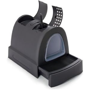 Catit Jumbo - Toilette per gatti con tetto, Grigio scuro, 56 x 46 x 50 cm, grande e spaziosa con filtro al carbone