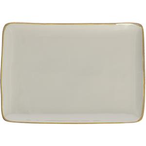 ROSE & TULIPANI Vassoio Rettangolare 27x19 cm in Gres Concerto Avorio con Bordo Dorato