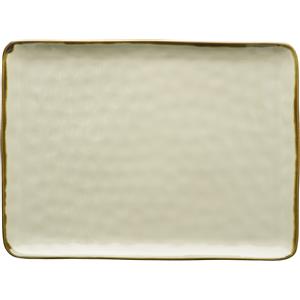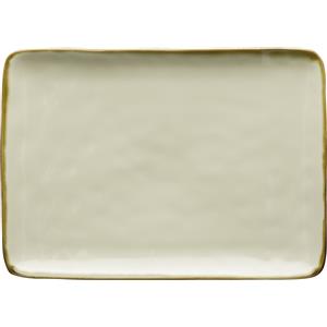 ROSE & TULIPANI Vassoio Rettangolare Avorio con Bordo Dorato in Gres, Linea Concerto, 36x26,6 cm