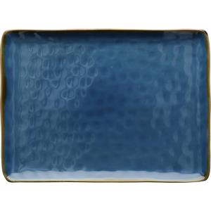 ROSE & TULIPANI Vassoio Rettangolare Blu Avio con Bordo Dorato in Ceramica Decorata - Linea Concerto 36x26,5 cm