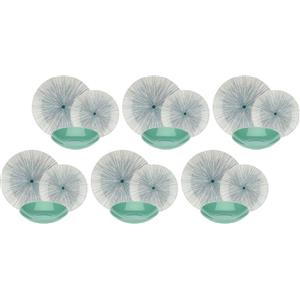 ROSE & TULIPANI - Set 18 Piatti Sea Breeze in Gres, Lavabile in Lavastoviglie e Microonde