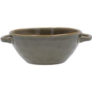 ROSE & TULIPANI Set 4 Ciotole Zuppa Grigio Tortora 600cc con Manici - Gres, Lavabile in Lavastoviglie e Microonde