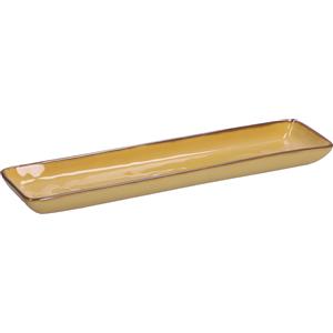 ROSE & TULIPANI Set di 4 Vassoi Rettangolari in Gres Ocra 32x8 cm con Bordo Dorato