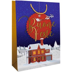 Biembi Shopper Natalizia Premium 'Buone feste' - Confezione da 6 pezzi - Dimensioni 33x46x13,5 cm