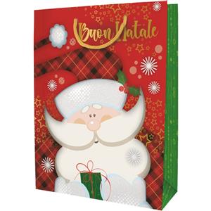 Biembi Shopper Natalizia Premium 'Babbo Natale' - Confezione da 6 pezzi - Dimensioni 33x46x13,5 cm