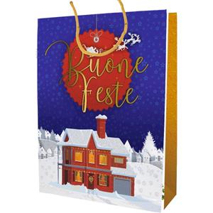 Biembi Shopper Natalizia Premium 'Buone feste' - Confezione da 6 pezzi - Dimensioni 33x46x13,5 cm in Scuola e Cancelleria