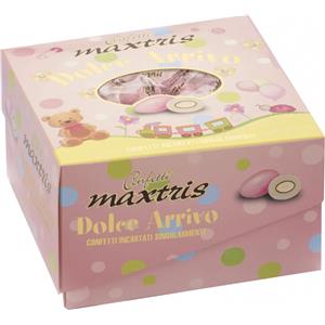 Maxtris Confetti Dolce Arrivo Rosa - 500g di Mandorla Tostata con Cioccolato Fondente e Bianco, Senza Glutine