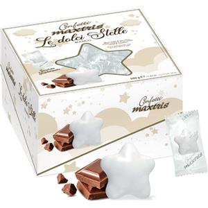 Maxtris Confetti Le Dolci Stelle Bianco - Cioccolato al Latte a Forma di Stella, Incartati Singolarmente, Senza Glutine, 500 Gr