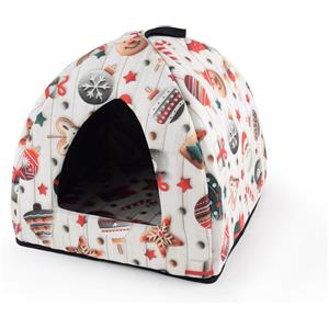 LeoPet Cuccia Piramide Natalizia 40x40x40cm con Cuscino Estraibile e Decorazione Festiva