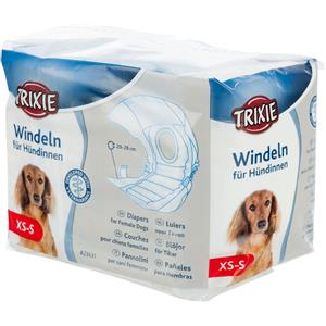 Trixie Pannolini Igienici per Cani Femmine XS-S (20-28 cm) - 12 Pezzi, Alta Assorbenza, Fascia Elastica e Apertura per la Coda