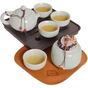 TeaSoul Set in Porcellana Ru Verde - Teiera, Due Tazze e Vassoio di Servizio