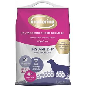 Inodorina Tappetini Igienici Super Premium Instant Dry con Carboni Attivi - 30 pz, 60x60 cm, Assorbimento Rapido per Cuccioli e Cani Anziani