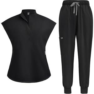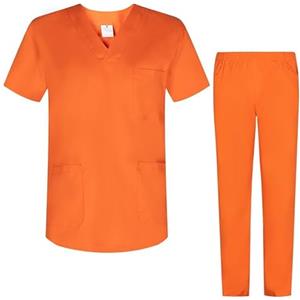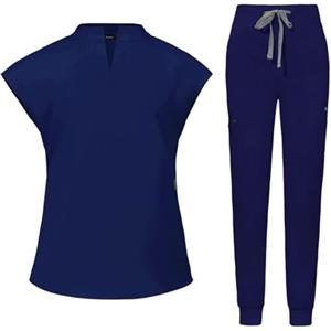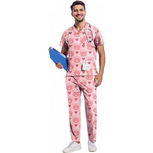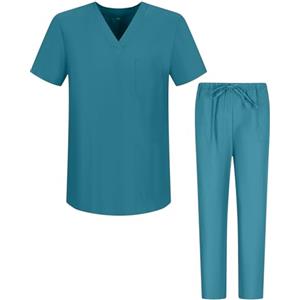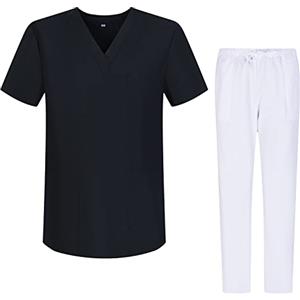 HAOLEI Divisa Infermiere Uomo Divisa Sanitaria Set con Casacca e Pantalone Sanitaria Uniformi Infermiera Ospedaliere con Cordoncino Camice Medico Uomo Set Uniforme Maglia Frontale & Pantaloni