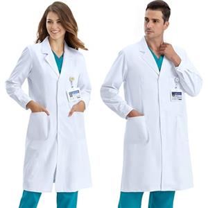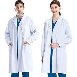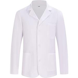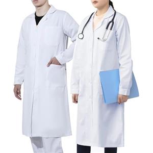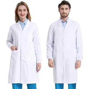 COCREAZY Camice Bianco da Laboratorio, Camice Medico Donna Uomo, Cotone Camice Laboratorio Chimico Maniche Lunghe Cappotto Medico Camici da Lavoro Chimica per Studente Scuola Infermiera Carnevale, S