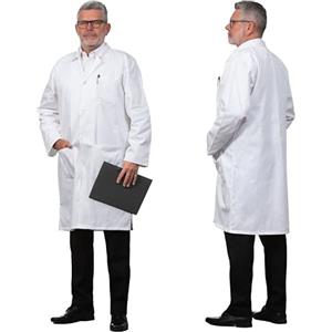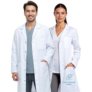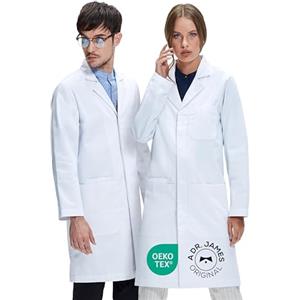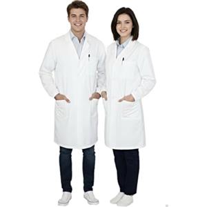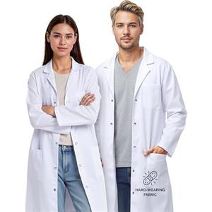 LuluLab Camice Bianco Laboratorio Unisex Uomo Donna, Lunghezza Ginocchio, Poliestere Cotone 200 GSM, Chiusura Bottoni a Pressione, 3 Tasche, per Medico, Infermiere, Clinica, Scuola e Farmacia