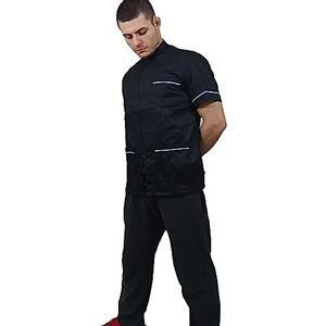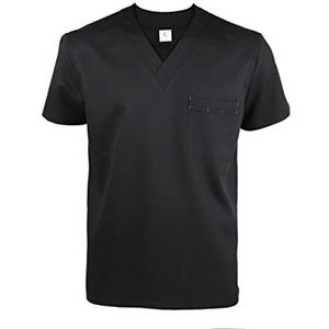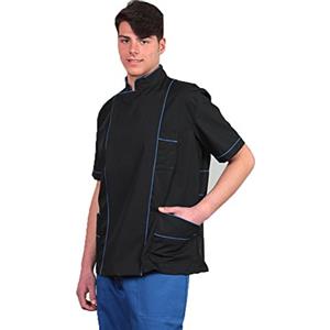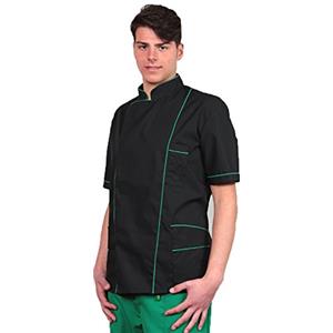 JONATHAN UNIFORM Divisa OSS Uomo Casacca Sanitaria Elastica a Manica Corta, Camice Medico Tasca per Dentista Infermiere (Nero, L)